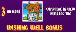 The wishing well bonus is usually the least valuable but the most unpredictable of the rainbow riches features, 3 wishing wells would normally award anywhere between £2-£30, 4 wishing wells could award £20-£150 and 5 wishing wells would be anything from £60-£500! The online version would ordinarily offer the same amounts based on a £1 stake. |